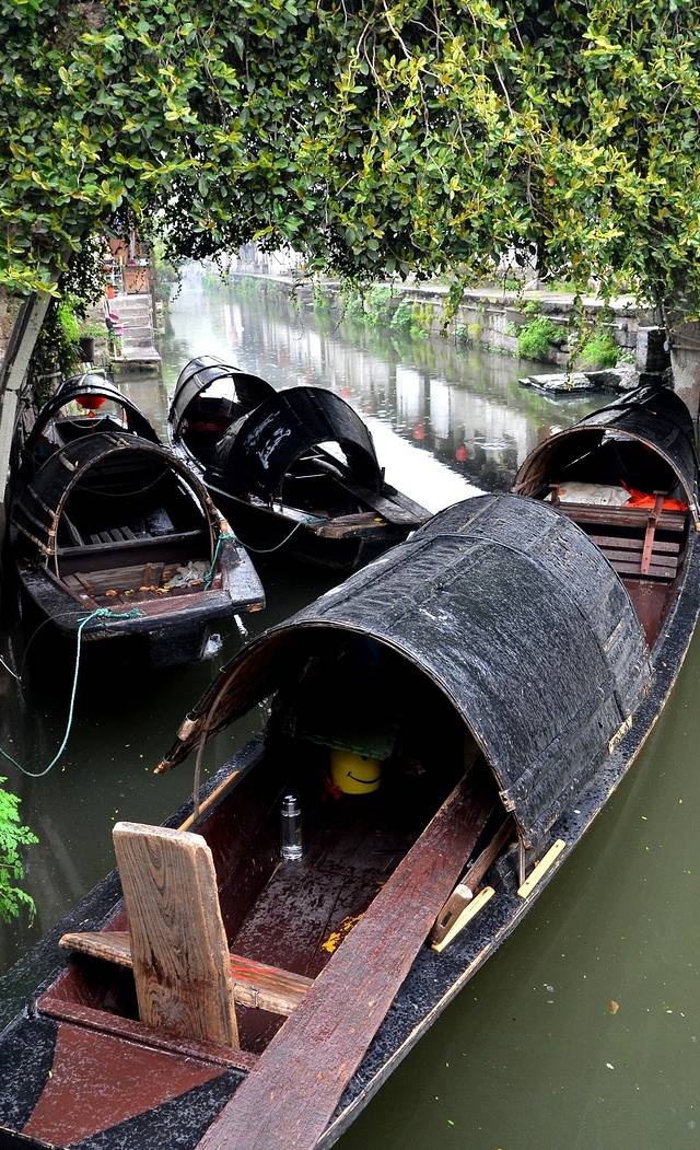 我在鲁迅故里游记里就提到,在绍兴,乌篷船随处可见。看到湿漉漉的坐凳我觉得应该不是很舒服,不过拍照应景儿真是非常好看。