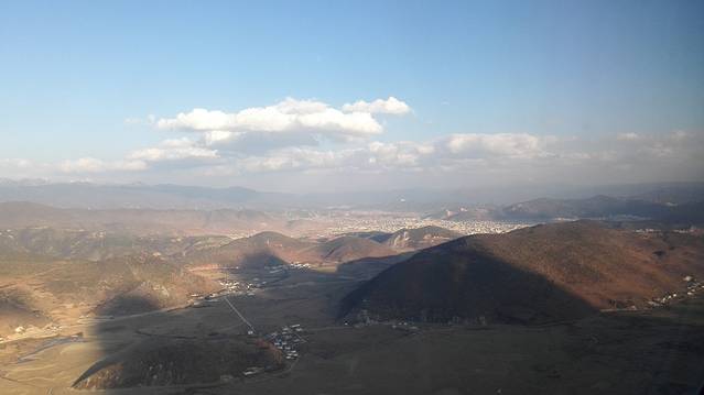 香格里拉的上空,飞机快要降落了。