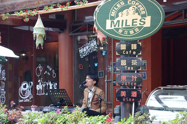 第一晚过来束河就路过这家“坚果壳咖啡舍”,听着里面的歌手自弹自唱,真心一句舒服,后来路过几次,都说要找个晚上进去坐坐。最后一晚了,打算过来,找了几条街都没找得着,奇怪了。后来心灰意冷的时候,却找到了,和老板娘说起才知道,她刚回来开店原来刚才找的时候看到没亮灯,没歌声,就没注意店名了。