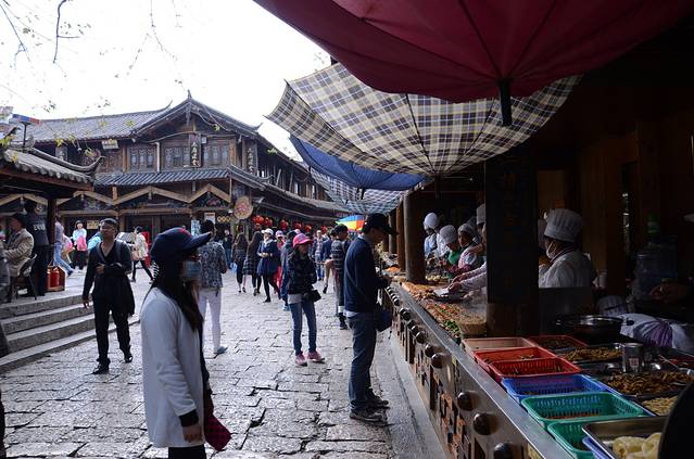 古城中心的四方街:有名的小吃一条街。对于广东人来说,调味料太重了,很多人受不了