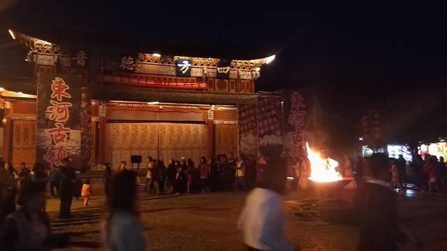 回到束河,晚餐吃东北菜,然后去四方听音广声参加篝火晚会(每晚都有,21:30分结束),虽然不会跳,不过也加入人群走了几圈,什么都试一下!