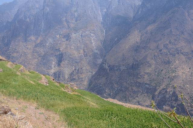 哇噻,绿油油一片!不过收割的时候就危险了,这是峭壁!