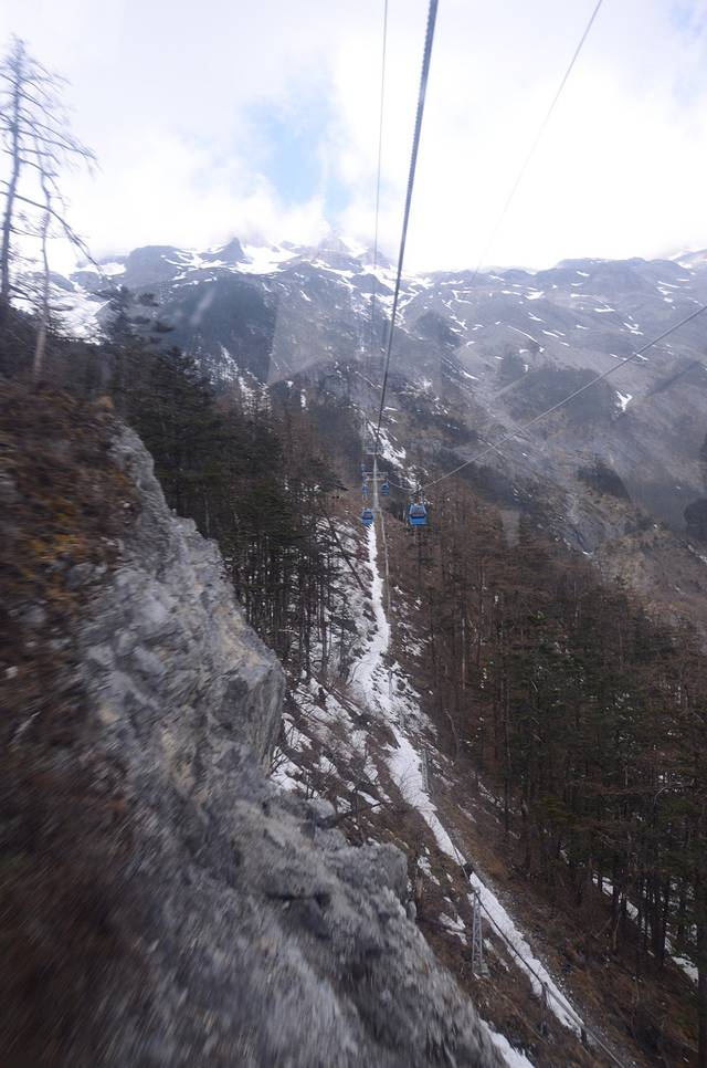 环保车绕着雪山转了十来分钟吧,到了大索道的起点,然后解决三急之后,再次排队,上缆车后,时间是11:42分,排队排到有点头晕了。