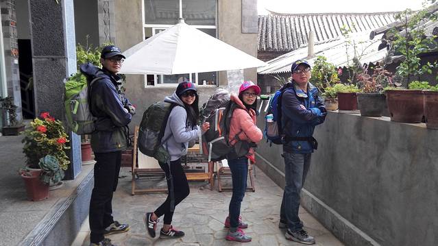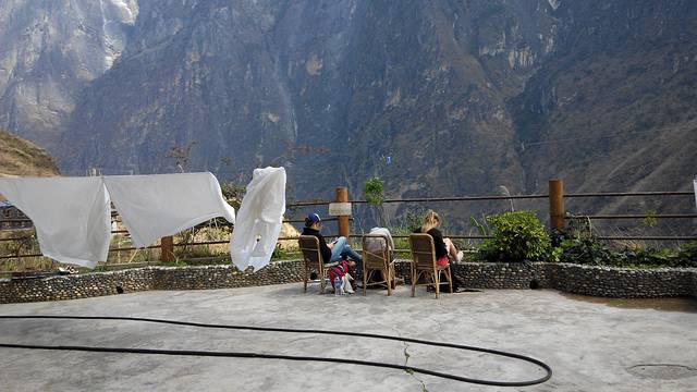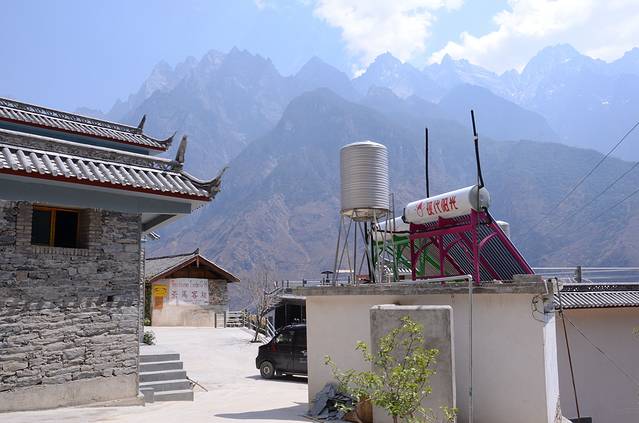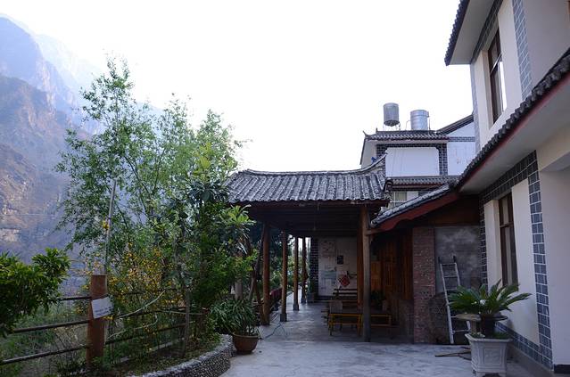 Tina's面积很大,听说是整个虎跳峡景区规模最大设施最齐全的旅店,占地估计有500平方,这是庭院一角。本来打算四个人包个5人床位房的,不过老板在扩建三楼,所以一楼两间标双房优惠给我们一共160元,淡季的好处!