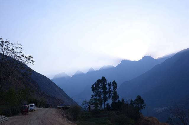 在虎跳峡景区门口下了车,跟景区工作人员打听了明早开门的时间。本来打算明早提前进去就可以逃票,后来还是打消了这个念头,毕竟门票的钱还是用来管理景区的。 入住景区门口附近的“大蓝青年旅舍虎跳峡店”,就在路边,客栈里好大灰尘阿!老板说刚搞好香格里拉店的装修,就过来这边了。今晚是整个云南游住的最差的一晚,晚上在外面吃饭也是吃得最差的一餐,饭菜贵,又不好吃,千万别吃鱼,否则你会后悔的!