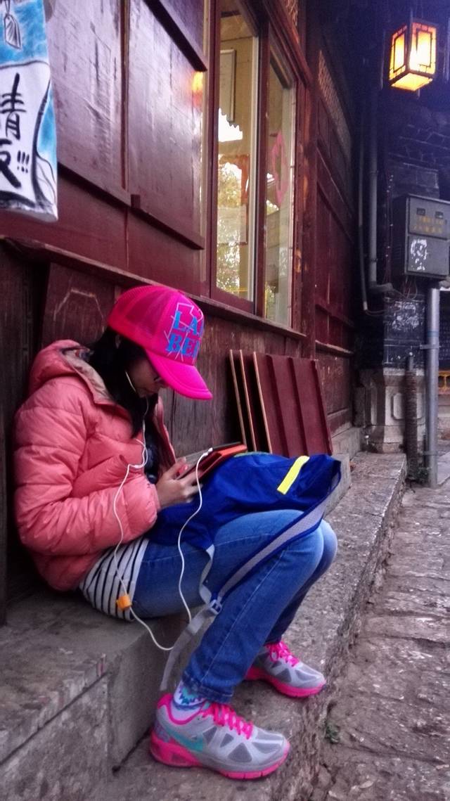 看的古城多了,有点审美疲劳,这小女儿在人家店门口看“欧巴”脑残片发打时间,为的,就是等看古城的夜景。