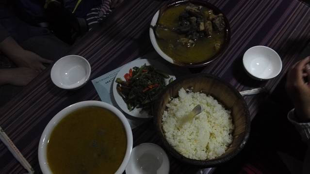 晚餐在古城内网友推荐的“顺顺小吃”(金龙街东廊路,13988783619)吃牦牛肉火锅,小锅里的牦牛肉很大块,份量足,一边吃青稞饼一边喝酥油茶是最好的搭配,酥油茶要了咸味的,第一次尝试,觉得很好喝,不过喝多了有点腻。