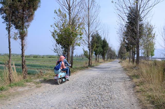 不过计划总跟不上变化。租车的时候老板说可以走50公里,我们去到桥湾镇的时候看到已经25公里的,害怕不够电开回才村,所以没到喜洲就往回走了,龙龛也去不了。但是我们还车回到客栈,阿TELL发觉自己的腰包放在电动车里了,马上回去取,发觉另一台车又租出去了(走了50多公里没充电,就继续租出去了,晕S,那电动车应该可以开很久吧?被骗了~)