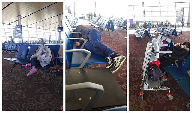 我、Tell、Sa、阿红,四人早上从佛山南海出发,前往广州白云机场,办登机手续后飞往昆明,我在飞机上就有点头痛,开始以为没睡午觉(平时都有午睡习惯),但下飞机后四个人都头痛,才知道是高原反应了,提前7天开始吃诺迪康还是有高反。正好昆明飞香格里拉的航班延误1个小时,这个时候躺在椅子上休息一下是最好的了。中间那个就是我