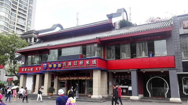 原计划是到西山森林公园游玩,再去看金马碧鸡坊的,但听很多游客都说,昆明滇池很脏,那我们去了感觉就没意思了,因此订了七天连锁酒店(昆明火车站店),休息一个上午,中午再打的(10元)到金马碧鸡坊,在附近的“桥香园”吃正宗云南过桥米线。