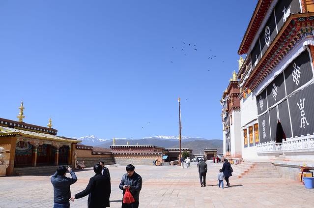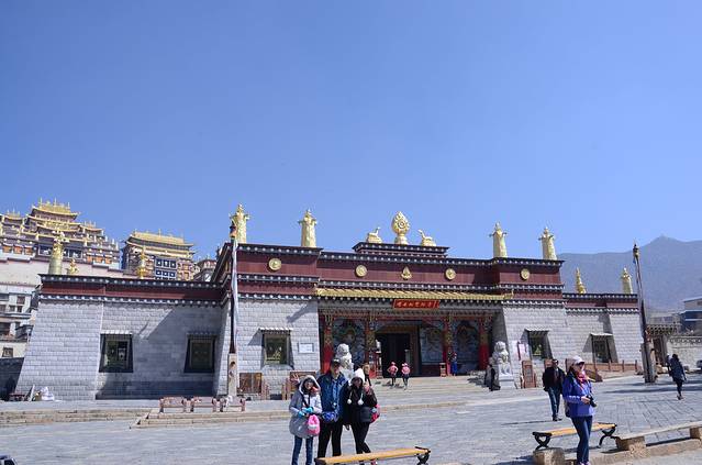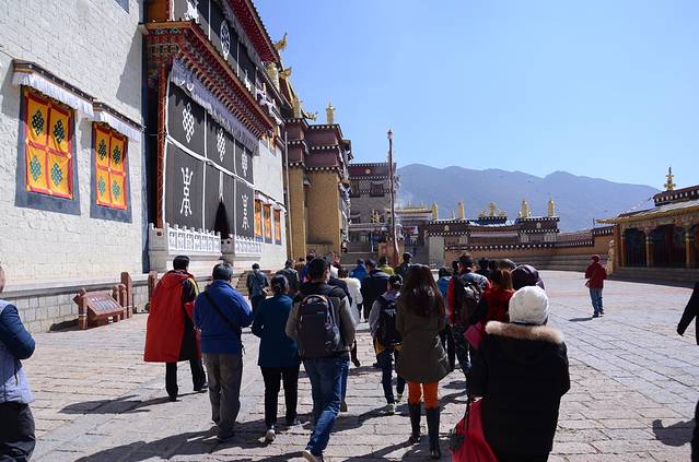 后打的到小布达拉宫:噶丹·松赞林(在去哪儿网上订票105元返12元,含景区内环保车)。注意事项:脱帽再进佛殿,参观大殿左进右出,不可踩门槛,殿内不能拍照,更不能大声说话。