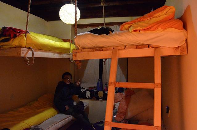 天气太冷了,回到客栈都围着火炉取暖,住的是四人铺,都有电热毯。不过大家整晚都睡不熟,醒来几次,干燥(还好带了润唇膏)、头痛,3个人流鼻血,我睡上铺,半夜起床下楼梯还要慢慢下,有点缺氧,惨死了。