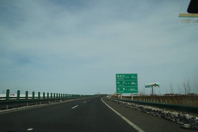 历时 7个小时 下午 2点钟 到达 长春 进入市区 ,中午 在 蛟河服务区 简单 打尖 。