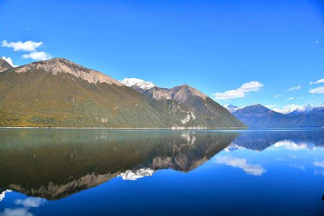 湖面波光粼粼,雪山倒映在湖面,这种景色简直太治愈了