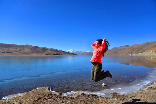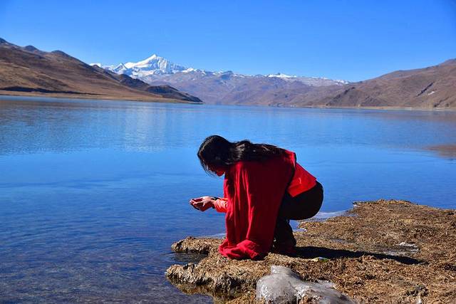 从拉萨翻过5000米的岗巴拉山口,一汪蓝色的湖面便呈现在了你面前,这就是羊卓雍错,全车的女孩子都尖叫起来,因为羊湖确实是太美了,在蓝天的映衬下,湖水呈现出不同的蓝,深蓝浅蓝孔雀蓝....整个湖面平静的依偎在山峦之间,安静得犹如一个羞涩的少女。看过羊湖的蓝,你会觉得世间其他的蓝色不过如此,那种随光影变化而呈现出的不同程次的光泽,是羊湖赐予人间的震撼,这种震撼后来在林芝,当我见到巴松错时,又再一次让我不能自持。