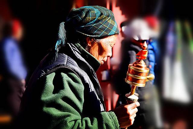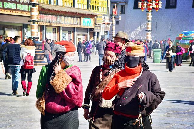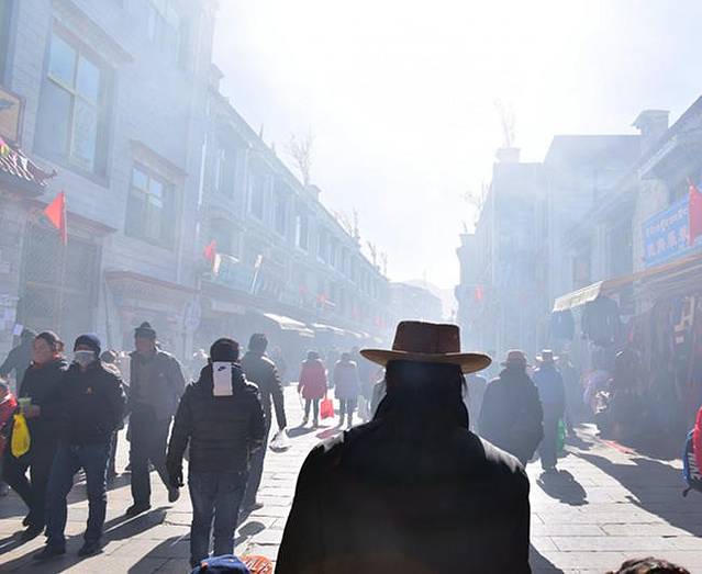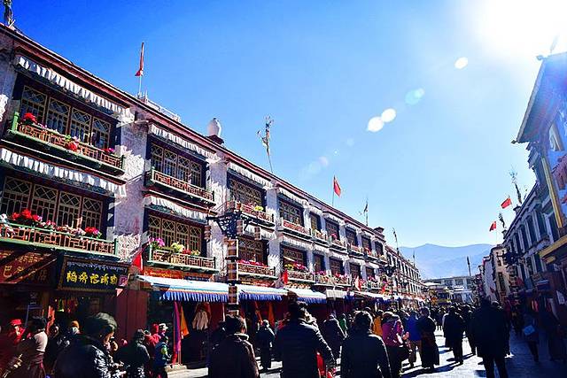 各种西藏攻略上都说,刚到拉萨,不要急着出去玩,要好好休息下,调整好心态和身体,以免高反,我真的觉得自己没有什么感觉,下午三点多的拉萨阳光正好,实在是按耐不住对这个城市的向往,在青旅办好入住手续,便拎着相机出了门,酒店离大昭寺也就几百米的距离,这个季节的八廓街,少了商贩叫卖声的带来的喧杂,但丝毫不减热闹和人气,从各地来转经的藏族同胞们,在八廓街汇成了一条不停转动的人潮,宗教的气息、文化的味道,在这个时候也显得尤其浓烈。