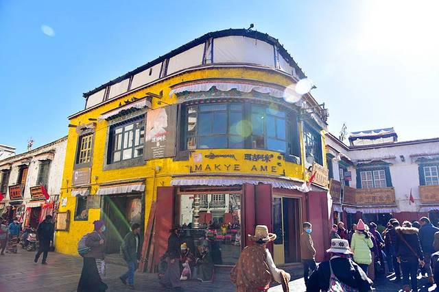 已经是进藏第五天了,似乎已经适应了西藏的海拔,回到拉萨,回到城市,觉得好放松,可以喝点儿小酒怡怡情了,冈拉梅朵这个藏餐厅很有名气,里面的装修也很有特点,只是这个餐厅估计是为游人定制的,所以这个季节很冷清,饭菜上的也慢,也没有觉得好吃,反倒是后来去的阿罗旺藏餐厅倒是不错,价格也适中,但我真心不爱吃藏餐,牦牛肉,青稞什么的也就是尝尝就好,最让我怀念的是在八廓街附近吃的“天府麻辣烫”,超级香啊。