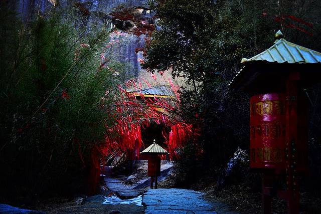 去八一镇的路上路过卡定沟,因为门票便宜,所以有人说这里很值,我不知道夏天怎么样,但冬天的这里确实没有什么可看的,瀑布结冰了,树木也是冬天的那种萧瑟,就是有一片竹海,看起来还算有感觉,尤其是挂满了祈福的红色飘带,好像走进了武侠小说的世界里。