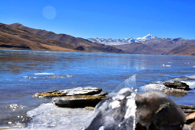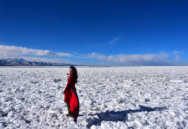 其实冬天来西藏,也缘于在网上看到一张冬季纳木错的图片,冰封的纳木错,蓝绿色湖面晶莹剔透,犹如“冰雪奇缘”里面的童话世界。