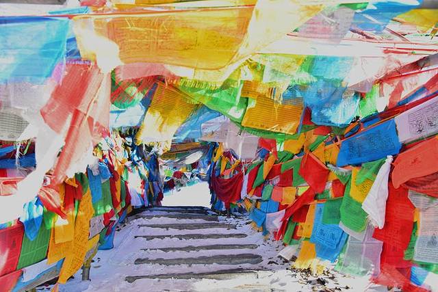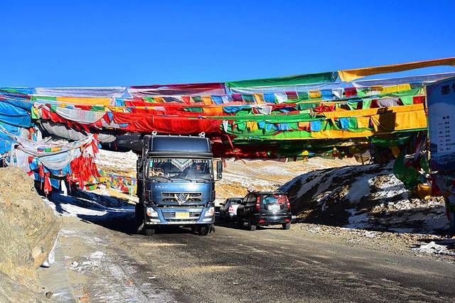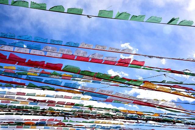 米拉山口是拉萨和林芝的分界线,海拔5013,也是拉萨到林芝之间的最高点,从拉萨出发,一路爬高,土黄色的砂石山脉贫瘠荒凉,在米拉山口的经幡随风飘扬,在西藏,五彩的风马旗随处可见,在湖边在山口,迎风飘展,可以把人间的愿望传达给神灵,它从当了沟通凡世和灵界的桥梁,他是一条人间和天堂的秘密通道,站在经幡林下,听风涌动的声音,心一下子就沉静下来,那声音如美妙的梵音直抵人心,所有的心事都仿佛付诸于它,随后归于平静......