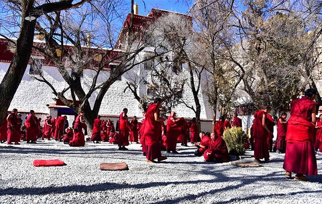 今天继续在拉萨休整,计划是哲蚌寺和西藏博物馆。哲蚌寺是黄教寺庙,在拉萨西郊的根培乌孜山上,是个重重叠叠的白色建筑群,前几天从日喀则回拉萨时候见过整体外观,这次坐公交到寺庙,反倒找不到一个合适的地方看了。据说每年雪顿节这里都会举行晒佛,一幅巨大的佛像唐卡会悬挂在寺庙的山上,蔚为壮观。
