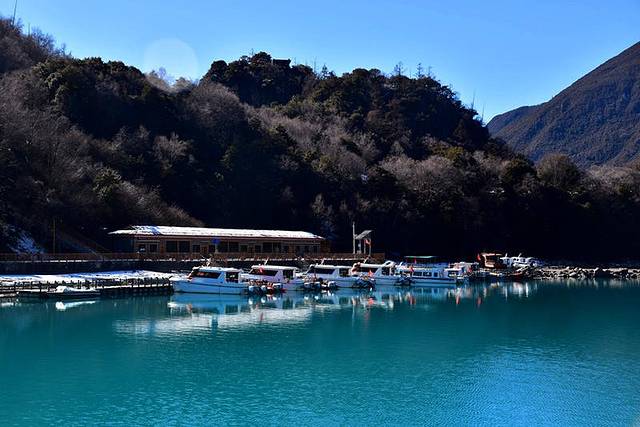 巴松错果然是太美了,一汪蓝绿色的湖水,周边环绕着圣洁的雪山,犹如一块绿宝石镶嵌其中,冬天根本就没有游人啊,我们是唯一的,这种地方如果人多了,估计是很难体会它静谧的美丽。