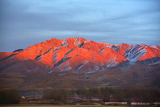 火车一路向西,看太阳一点一点地落到山的那边,而回首,起伏的山峦竟然被日落的余晖染成金灿灿的。
