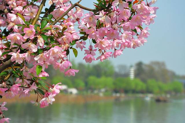 随后过芳桥来到梁洲,柳湾虬枝满园春,映湖杜鹃别样红。