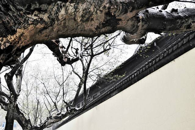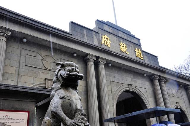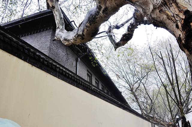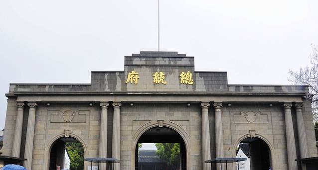 从酒吧街往东拐到长江路,人行道两侧一旁是黄墙黛瓦的高大院墙,一旁是伸展着粗壮枝杈的古树,森严之感是总统府给我的第一印象。