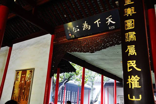 我们在东边耳房的一个特色摄影部拍照留念后,穿过大堂来到了东边轴线的建筑群。这里是典型的中式园林建筑,从惠洽两江、秉钱三江、政肃两江等匾额中,我知道了这里曾经是清朝 江宁织造署、江南 总督署、两江总督署 和康熙 、乾隆皇帝下江南的“行宫”。