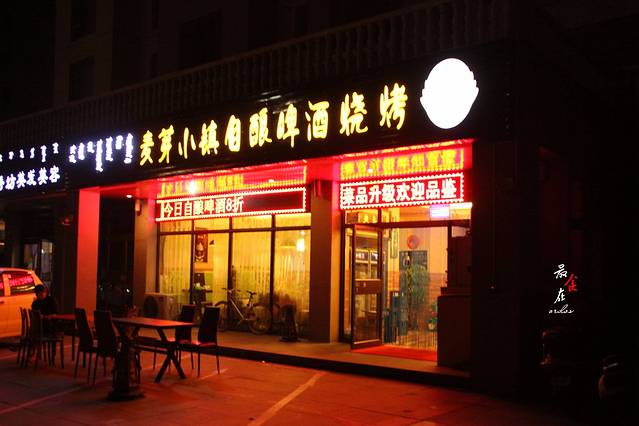 好多家爆满的烧烤店,都得排号等位。饥饿无比的我们,最终选择了街尾人略少的这家,冲着自酿啤酒和烤羊排来的。