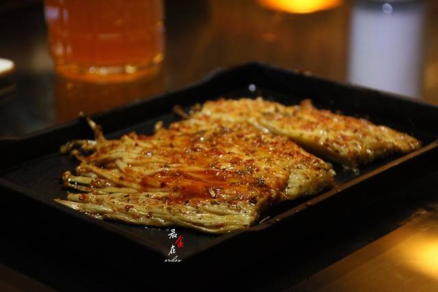上桌的第一道,也是对这家店印象最深的一道菜。真的超级好吃,烤金针菇本身是比较容易焦糊的,但是这儿的金针菇油很多,很嫩,完全不像烤出来的,酱料很足很带感。大赞!