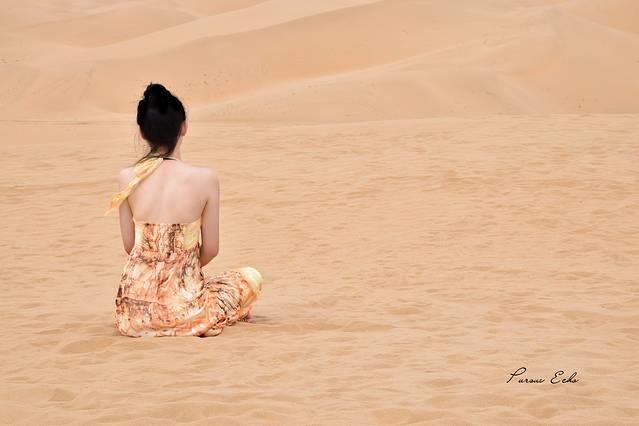 对沙漠的渴望最初是源于三毛,一如我的logo所写,Pursue Echo。三毛和荷西童话般的爱情故事都留在了沙漠~三毛说:每想你一次,天上飘落一粒沙,从此形成了撒哈拉。这是怎样一份刻骨的怀念······