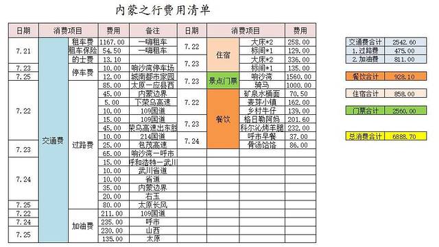 最后:消费清单附上,供大家参考