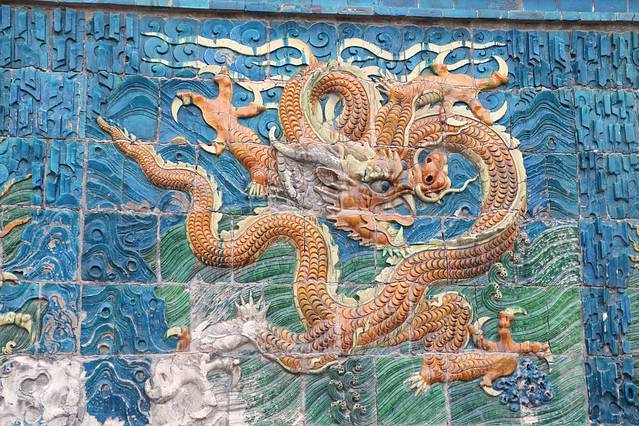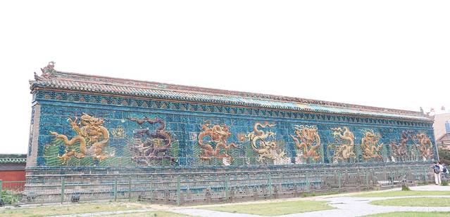 这个角度可以拍到完整的九龙壁。传闻这九龙壁曾挪过位置,此前,九龙倒映水中,犹如飞龙水中游,很是壮观。
