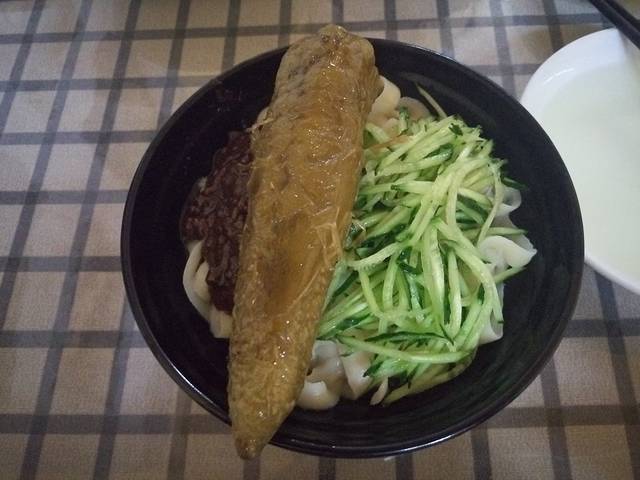 大头的炸酱面+腌青椒。大同口味偏重,尤其这炸酱面,是真心咸,我不敢挑战。