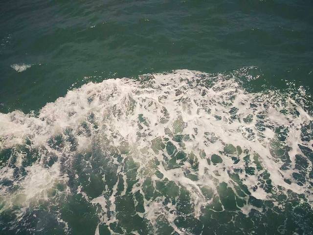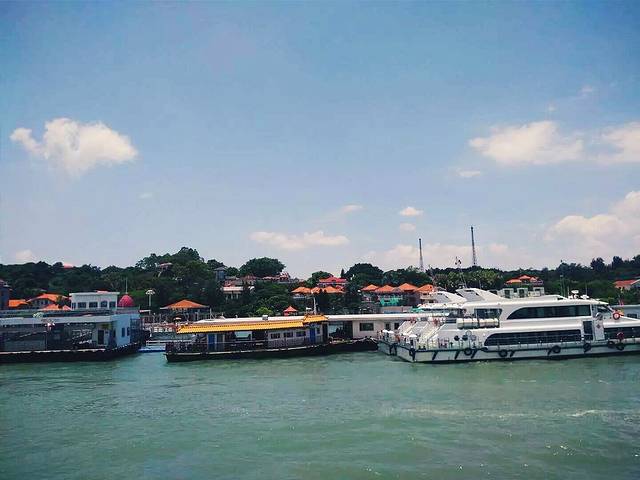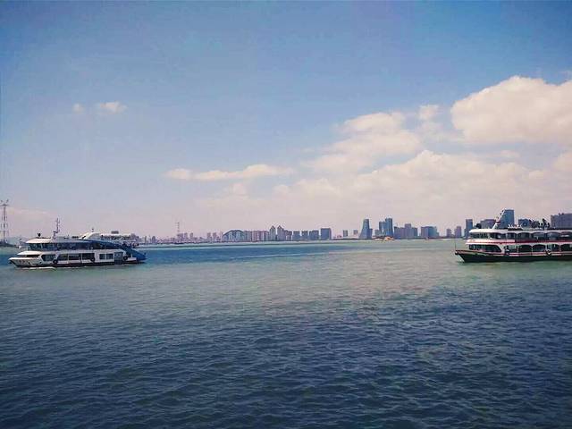 轮渡做20分钟就可以到鼓浪屿,我们是站着的,静静地吹着风,看着海水。