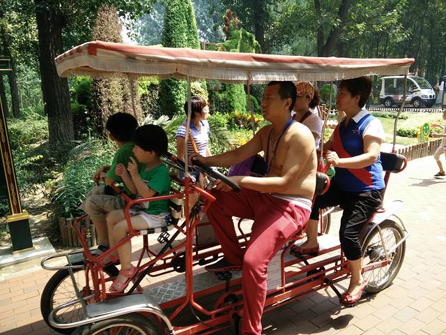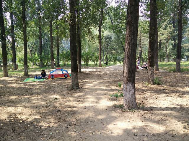 在公园里,很多人在园中漫步,也有一部分再骑多人自行车,还有的干脆支起帐篷,在里面打牌,好不热闹。