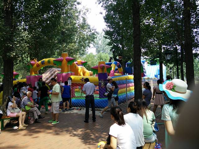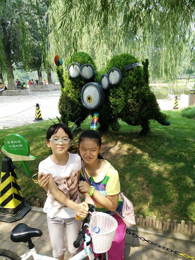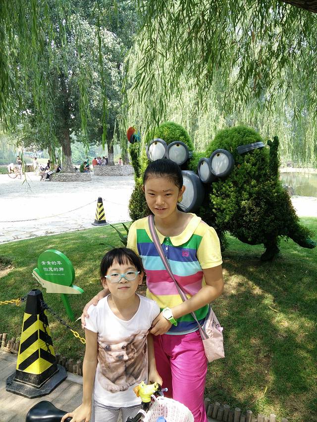 女儿放暑假已经一个多月了,一直没有时间陪她出去玩,正好赶上这个周末有空,约上朋友的一家去朝阳公园玩。一家人开开心心的坐在车上,可走了半个小时还没有出通州,一气之下,给朋友打了一个电话,换地,去大运河森林公园。 到了公园已经快十一点了,8月中旬的天还是比较热的,让人不免有些烦躁感,朋友一家还没有到,只好在公园门口坐等。