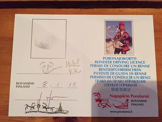 在温暖的芬兰小木屋里,我们拿到了今天的第一个证,驯鹿驾驶证!