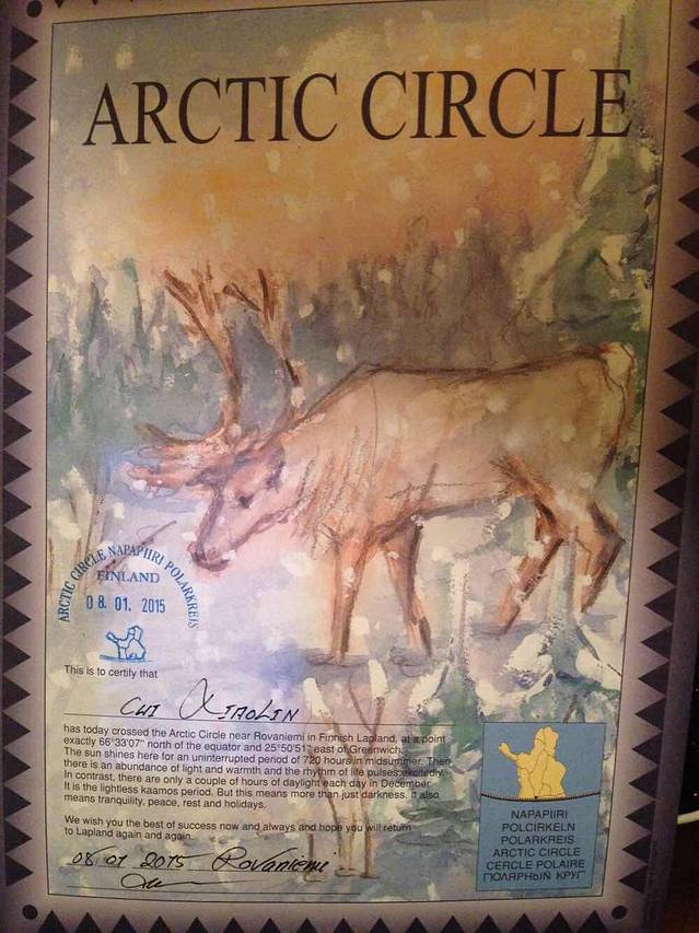 圣诞老人村,我们一脚北极圈外一脚北极圈里得跨越!还拿到了第二个证书:抢占北极熊领地证书,咯咯!