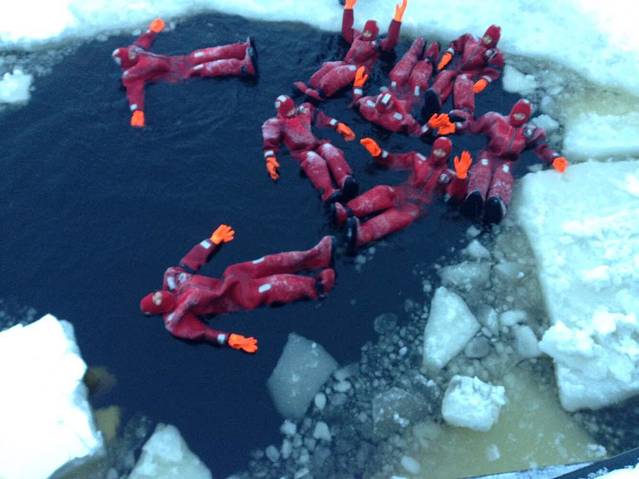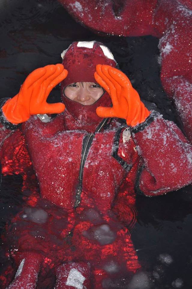 暖暖的漂浮衣让我们可以在寒冷的冬季最近距离的亲近大海,摸着身边破开的一尺厚的冰面,想象着泰坦尼克那一刻的寒冷....