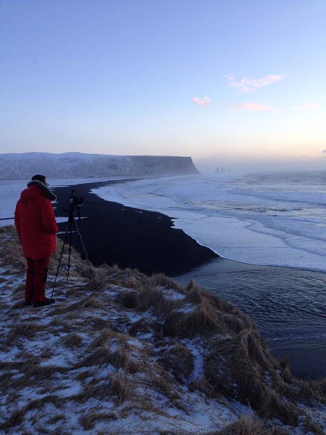 在VIK沙滩的Dyrholaey……在这里遥望远处的黑石沙滩,偶遇昨天的极光猎人(停车场发现了他的小红车),大家都高兴的和他合影,一个风度翩翩的英国绅士,被告知已经拿到了极光的大片,很守信的陌生人,看着他一个人孤独的身影,昨天在深夜,今天在海风中,也许孤独也是一种享受吧!