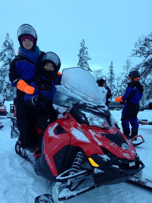 开心刺激的一天从骑雪地摩托开始啦!2男+4女组合,最后我光荣的成为了那个女汉纸,开着雪地摩托带着我们的大宝贝一起兜了3个小时雪地风,我们的3对组合哦!特别感谢我们的大宝贝对我的信任和鼓励!