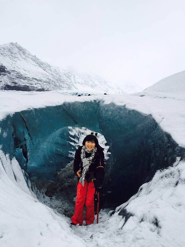 在冰川幸运到看到了这个冰洞,姐姐们帮我拍下了这张开心的笑脸,每天累并快乐着,觉得自己非常的幸运有大家的支持!