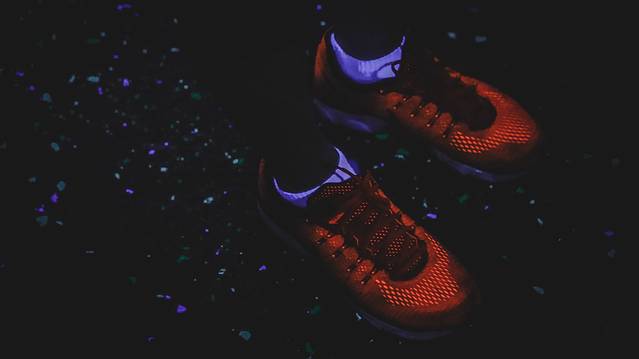 唯一有特色的是它地上有一点点的光,然后照在鞋上很漂亮。这是我朋友,当时穿着一双刚好透孔d
