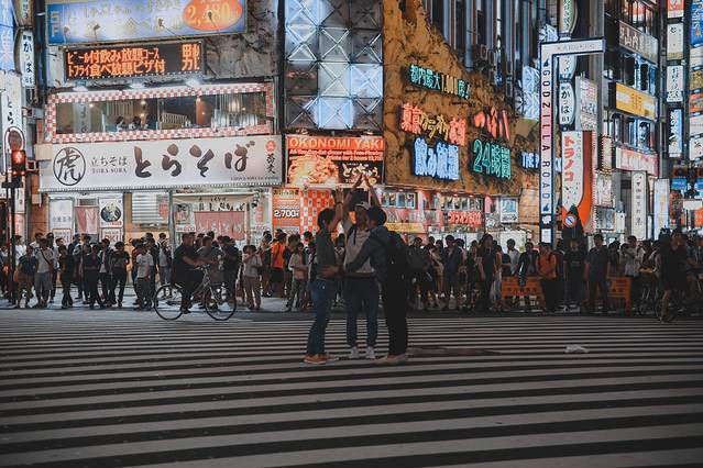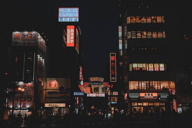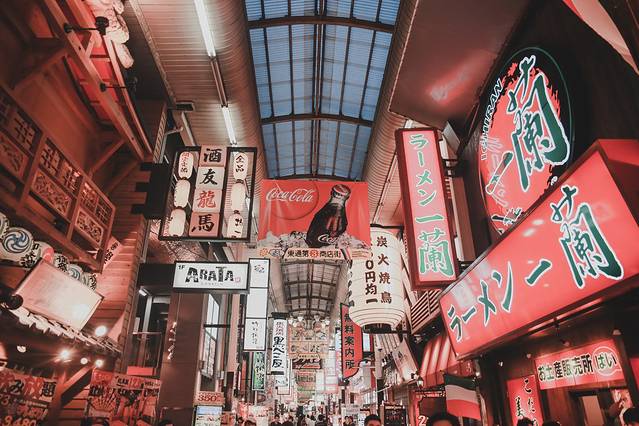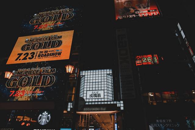 大阪的夜市很亮的,而且五颜六色。而且,推荐买化妆品都来大阪的药妆店,便宜哦