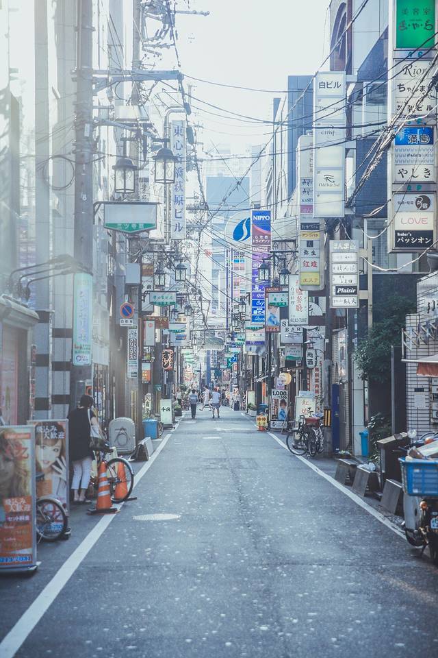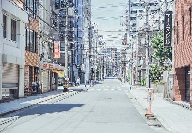 刚到大阪市区的时候,因为很早,路上人好少,然后天好蓝啊