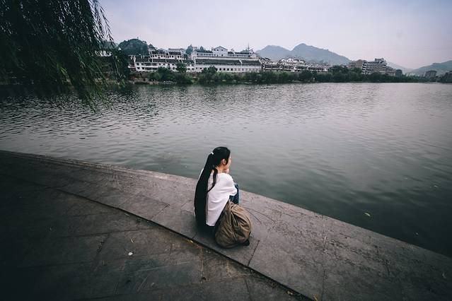 国庆长假前的镇远,游客非常少,我们带着问问沿着河边慢慢走,边走边拍