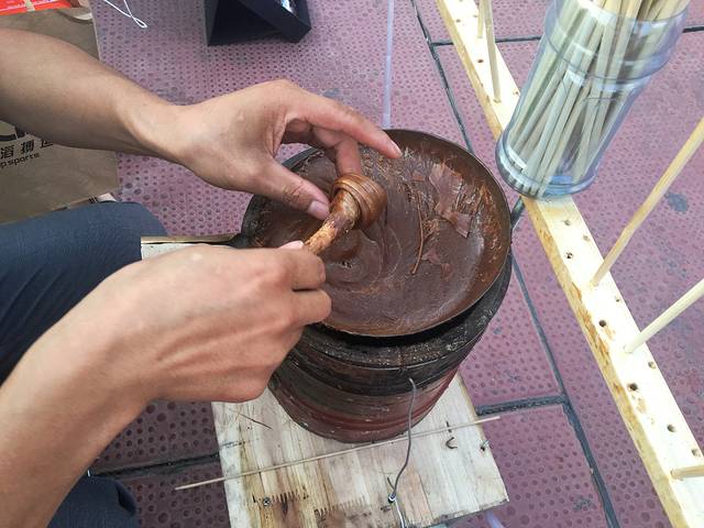 返回的人走在木板的外面一圈,进去的人走里面一圈